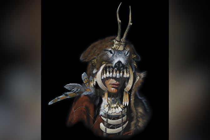Pored groba šamanke, perje igra ulogu u još jednom nalazu. Ispred samog groba, tokom naknadnih iskopavanja, otkrivena je jama koja je sadržala dve maske od rogova.