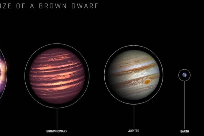 Smeđi patuljci nisu ni planete ni zvezde, već nešto između: barem 13 puta masivniji nego Jupiter, ali ne dovoljno masivni da generišu toplotu i pritisak za fuziju vodonika u helijum. Zbog toga ih ponekad nazivaju neuspele zvezde. Ovaj smeđi patuljak je možda jedan od najvećih dosad pronađenih, težak oko 75-88 Jupitera.
